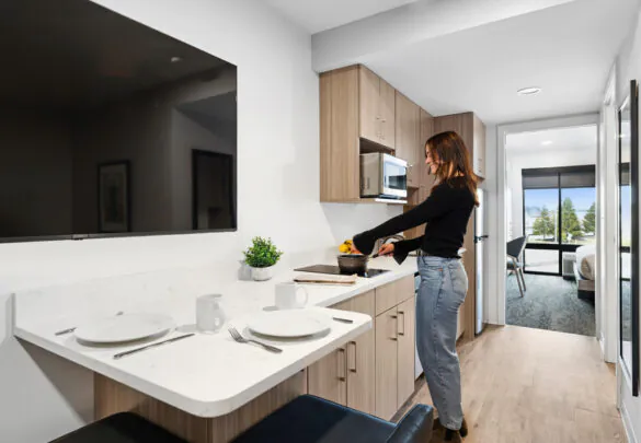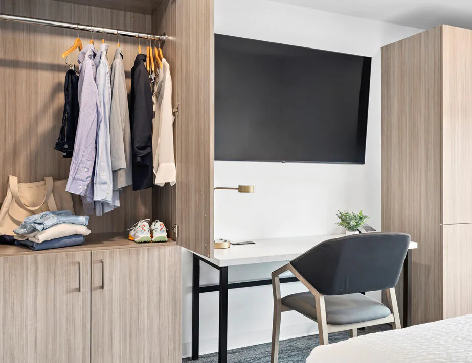 We know life doesn’t stop when you’re not at home. That’s why we’ve designed HomeAwhile for real life. Our apartment-style accommodations are clean, quiet, and equipped with everyday conveniences such as kitchenettes and reliable WiFi, and we provide on-site laundry and fitness facilities. Whether you’re working, visiting family, or in a period of transition, our spaces provide the essential comforts you need without unnecessary extras. With a la carte services, you can customize your stay to suit your needs, ensuring a comfortable, stress-free experience.